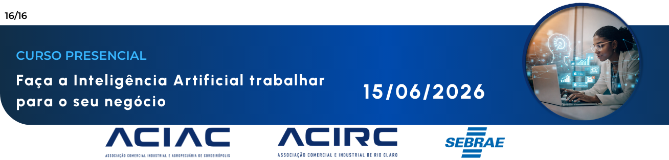 Explore como a Inteligência Artificial pode impulsionar o crescimento do seu negócio. Neste encontro, os participantes irão conhecer aplicações práticas da IA, desmistificar conceitos e aprender a utilizar ferramentas que podem otimizar processos, melhorar a produtividade e apoiar a tomada de decisões. Descubra como a tecnologia pode se tornar uma aliada estratégica no dia a dia da sua empresa.