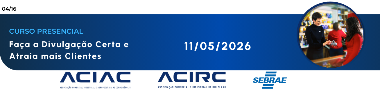 Aprenda como planejar e executar ações de divulgação de forma estratégica para atrair mais clientes para o seu negócio. Nesta oficina, os participantes irão conhecer 7 passos fundamentais da comunicação, abordando desde a definição do público-alvo até o planejamento, execução e monitoramento das ações de divulgação, tornando a comunicação mais eficiente e alinhada aos objetivos da empresa.