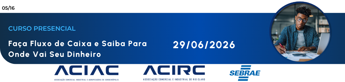 Aprenda a organizar e controlar melhor as finanças do seu negócio. A oficina apresenta conceitos relacionados aos controles financeiros e operacionais, orientando sobre a utilização do fluxo de caixa e sua importância para o acompanhamento das entradas e saídas de recursos. Os participantes também serão direcionados a realizar análises financeiras essenciais para uma gestão mais eficiente e consciente do negócio.
