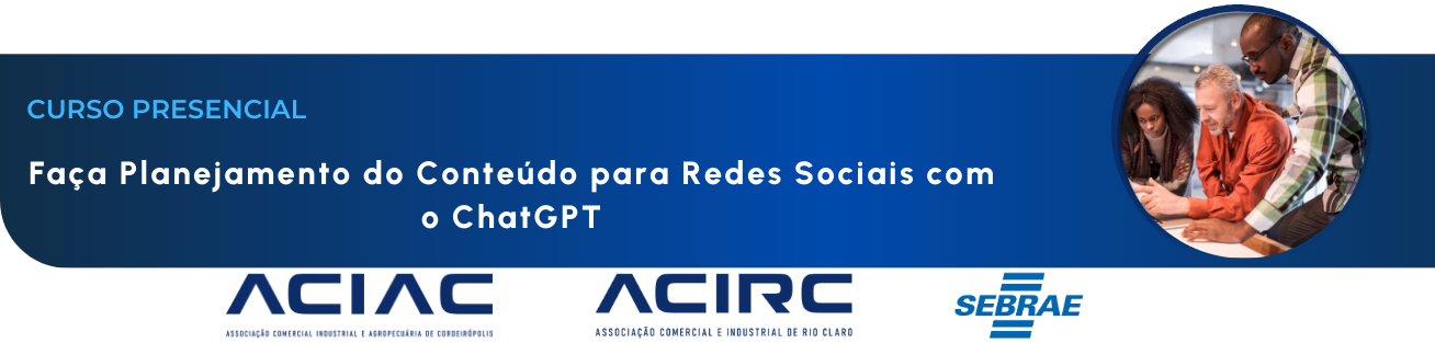 Introdução ao uso do ChatGPT para marketing;Planejamento de conteúdo para redes sociais;Criação de posts, legendas e ideias de campanhas;Organização de calendário editorial;Otimização e análise de resultados.